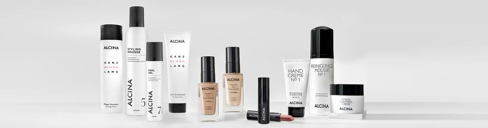 Alcina bietet wirksame Pflegeprodukte für Haut und Haare sowie eine große Palette an langanhaltenden Haarfarben, effektive Styling Artikel und professionelles Makeup. Alcina bietet somit für alle Beauty Bereiche Produkte, die sich durch Liebe zum Detail, Innovation und eine hohe Wirksamkeit auszeichnen.