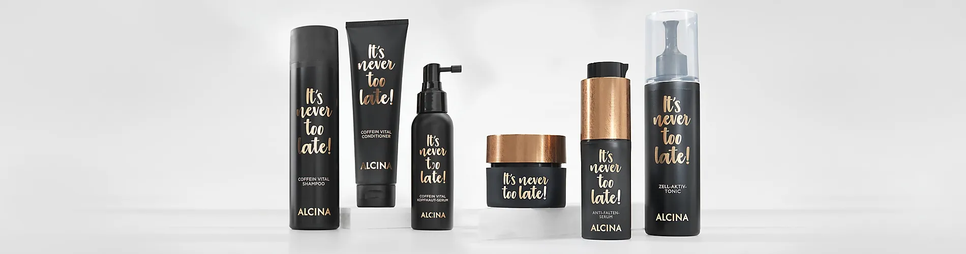 Zunehmendes Alter muss sich nicht auf die Schönheit auswirken! Mit den Haut- und Haarpflegeprodukten von Alcina It’s never too late kannst du sichtbare Anzeichen der Alterung wirksam bekämpfen und vorbeugen. Bestelle die effektiven Produkte jetzt online bei BellAffair!