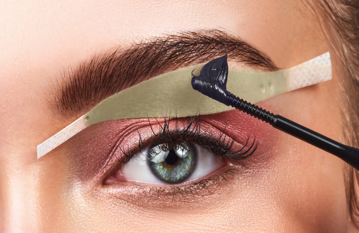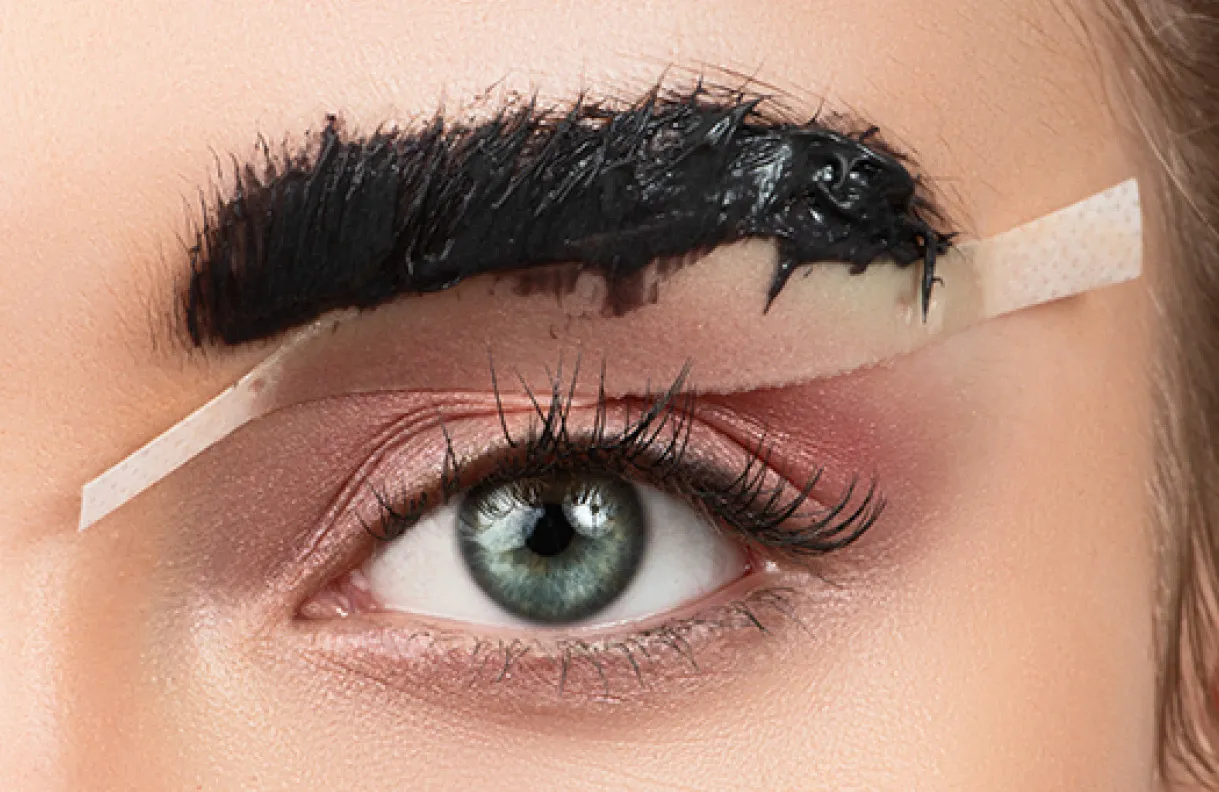 - Dann auf die Augenbrauen und Wimpern auftragen.