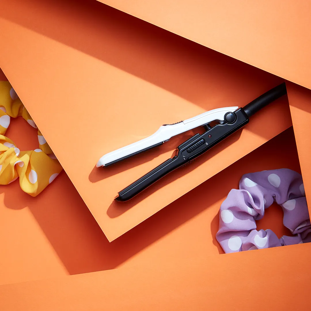 Trotz der geringen Wattstärke ist der handliche Mini-Haarglätter in kurzer Zeit einsatzbereit. Mit konstanten 200 °C und 13 mm breiten Platten kannst du die Haare Strähne für Strähne stylen.