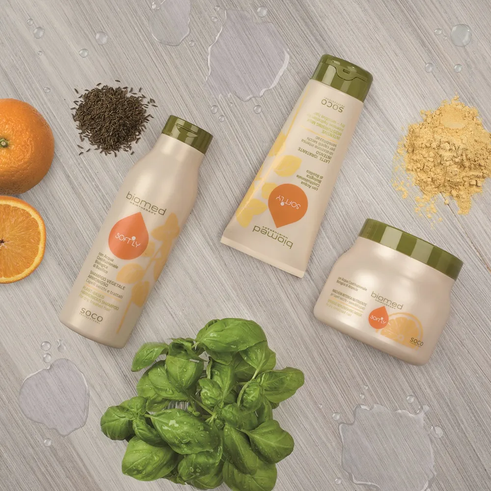Das Biomed SOFTLY Harmonisierendes Shampoo wurde für trockenes und behandeltes Haar entwickelt. Das milde Shampoo auf pflanzlicher Basis ist mit biologischem Basilikum-Zellwasser angereichert, das mit seinem hohen Vitamingehalt die Schuppenschicht stärkt. Schwarzkümmelöl und hydrolisierte Proteine aus Keratin nähren das Haar und spenden ihm Feuchtigkeit. Die Sonnenfilter sorgen für den nötigen Schutz. Es ist das ideale Shampoo für trockenes, coloriertes, gebleichtes, sprödes und beanspruchtes Haar. Es sorgt für Vitalität und Fülle ab der ersten Anwendung. Das Resultat ist weiches, regeneriertes und strahlendes Haar.