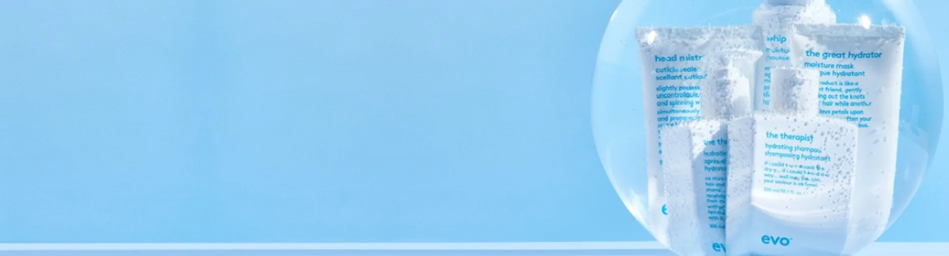 Need to turn back the dry? Dein Haar verlangt verzweifelt nach einem Drink? evo hydrate ist die Produktserie, die allen Haartypen, aber besonders trockenem, coloriertem Haar Feuchtigkeit spendet.
