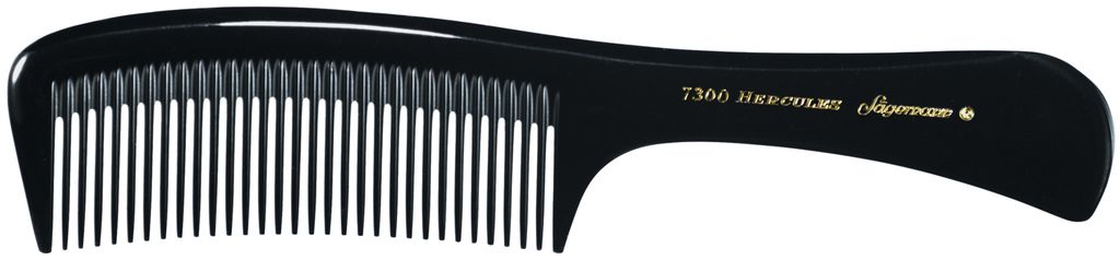 Der Hercules Sägemann Griffkamm 7300 ist perfekt geeignet für professionelle Arbeiten. Mit seinen abgerundeten Zinken ist er besonders sanft zu Haar und Haut. Der Griffkamm besteht aus Ebonit, welches die statische Aufladung der Haare verhindert. Dieses Material ist bekannt für seine Leichtigkeit und Flexibilität. Zusätzlich ist er noch hitze-, säure- und laugenbeständig. Das zeichnet zusätzlich seine Langlebigkeit aus. Wie alle Kämme von Hercules Sägemann wir auch dieser mit Hand gefertigt und zählt daher zu den hochwertigeren seiner Art.