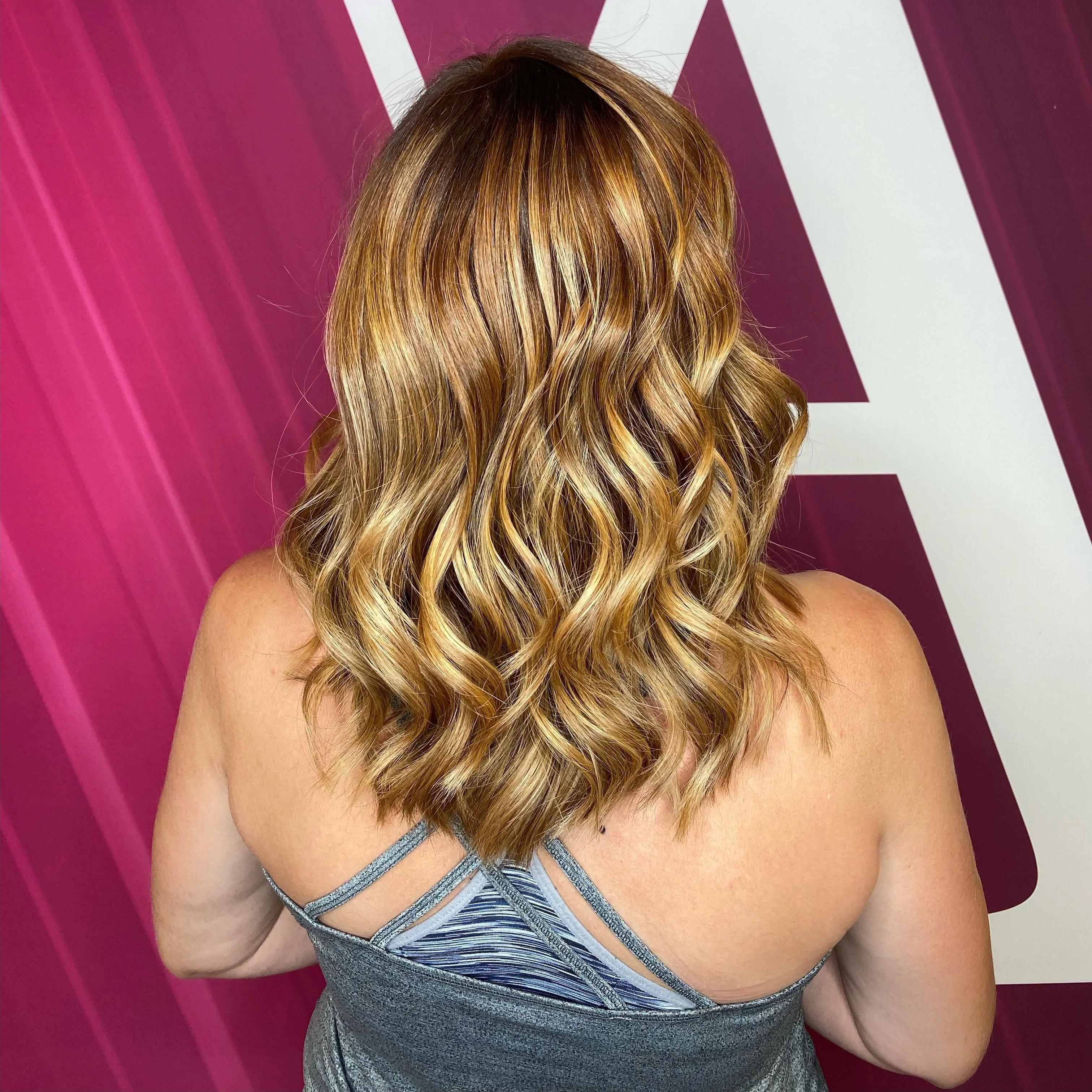 Karamell-Highlights kommen am besten zur Geltung, wenn große Locken mit einem Lockenstab, wie dem Remington Advanced Colour Protect Lockenstab 32mm CI8605, gedreht werden. Für das Finish empfehlen wir ein Glanzspray, wie das Color Wow Mist-ical Extra Shine Spray für coloriertes Haar, das den Karamell-Strähnen den endgültigen Kick gibt.