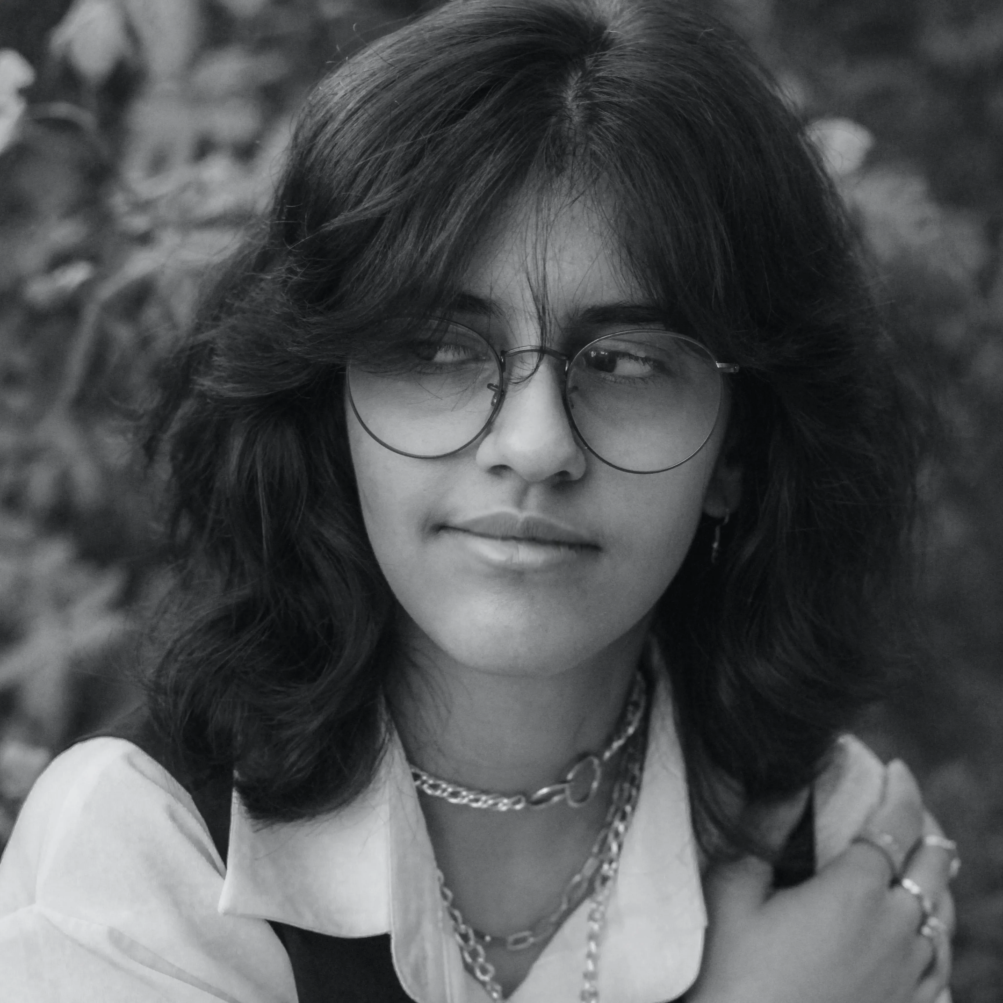 Eine Brille mit filigranem Gestell, langer Wallemähne und angesagten Curtain Bangs: Fertig ist der coole 70s-Revival-Look!
