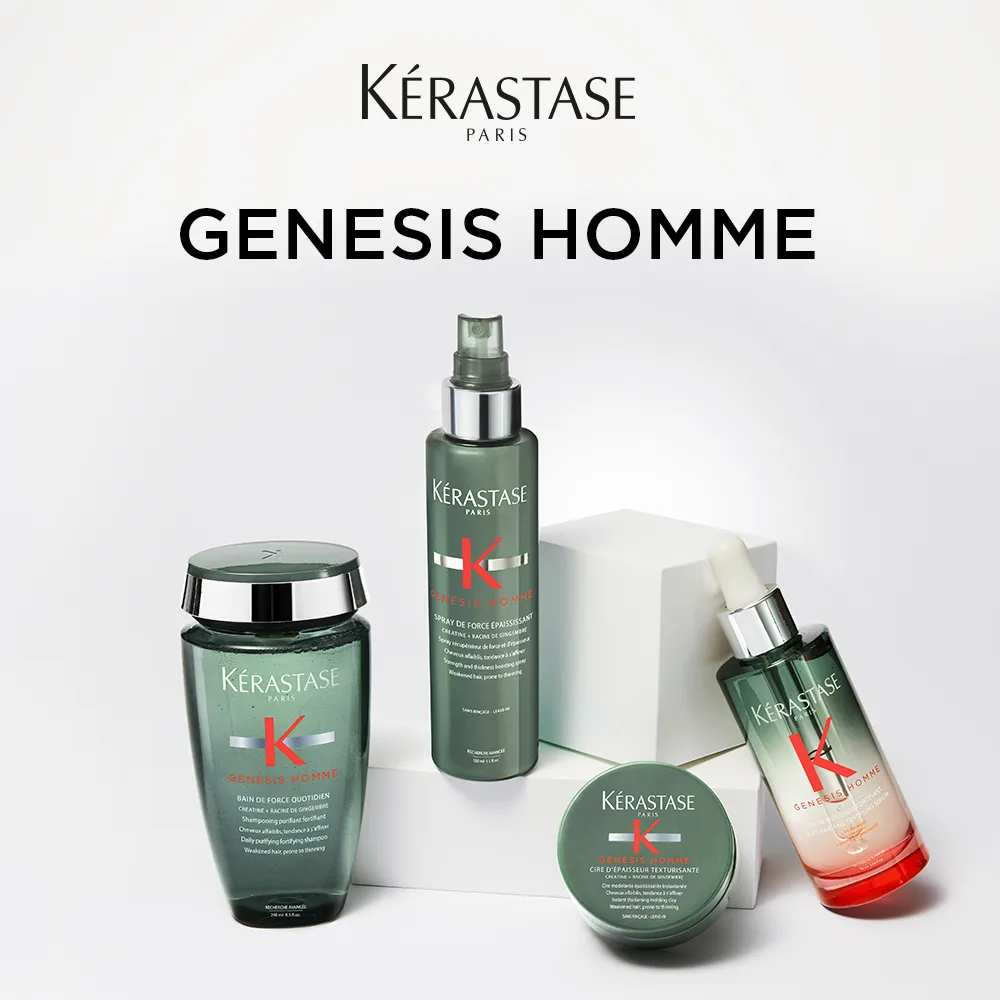 Mit der Kérastase Genesis Pflegeroutine kann Mann effektiv gegen Haarausfall vorgehen. Die Routine liefert sofortige Ergebnisse.