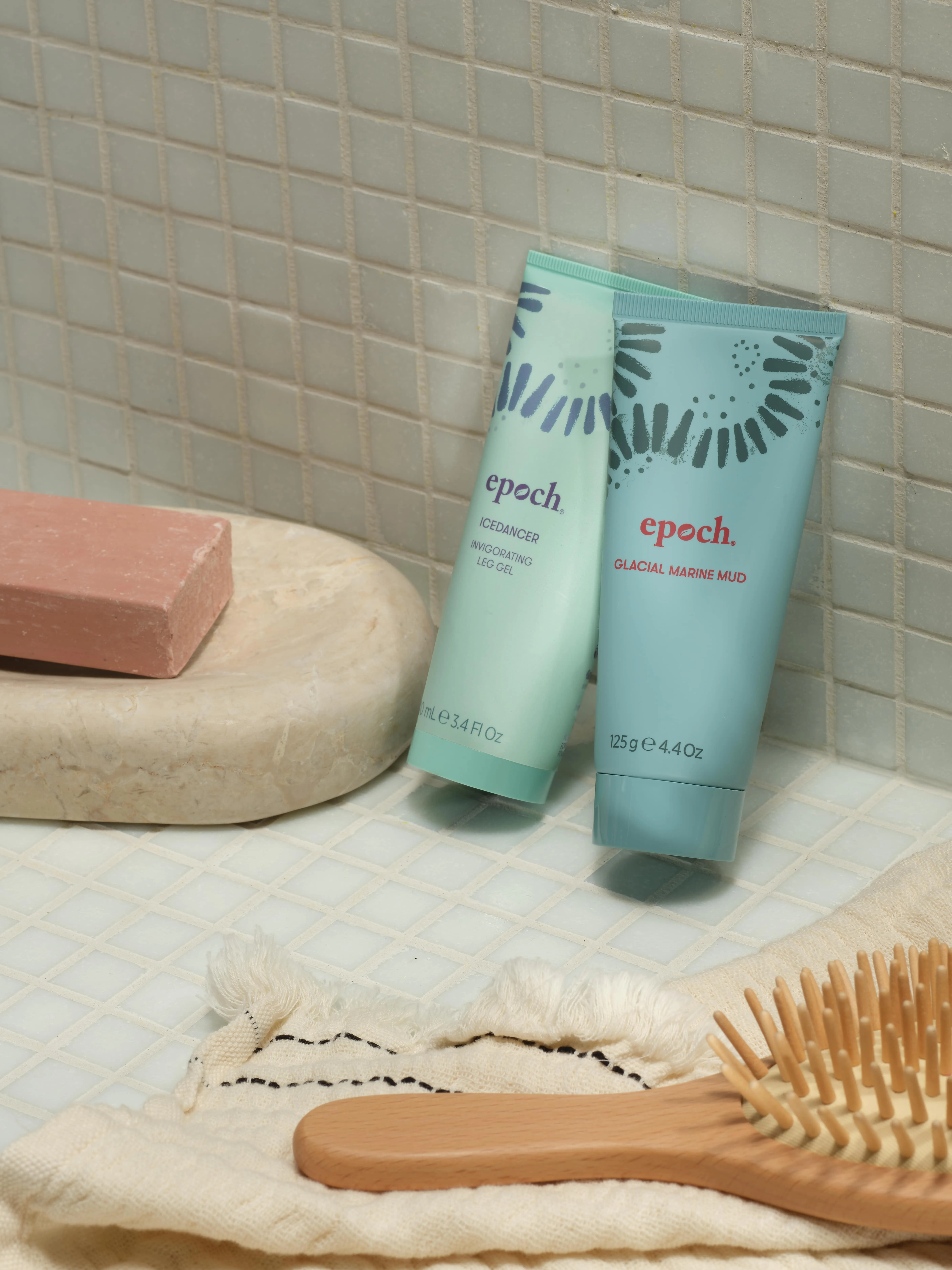 Die Nu Skin Epoch Baobab Body Butter versorgt die Haut mit Feuchtigkeit und erhöht die Widerstandskraft. Die Body Butter enthält Baobab-Fruchtfleischextrakt, Sheabutter und Kokosnussöl sowie Macadamia-Nussöl und Caprylyl Glykol. Die Formulierung macht die Haut spürbar geschmeidiger und weicher. Der Nu Skin Epoch IceDancer wirkt gegen müde Beine. Die leichte Formel mit Minze-Extrakt, Eukalyptus-Blattextrakt, Menthol und Pfefferminzöl revitalisiert müde und schwere Beine. Mit kühlendem Effekt. Die Nu Skin Epoch Polishing Bar entfernt überschüssiges Hautfett und Verunreinigungen. Die feste Duschpflege ist seifenfrei und enthält Mineralien aus Meeresschlammextrakt und gemahlene Rinde des Sisku’pas-Baums.
