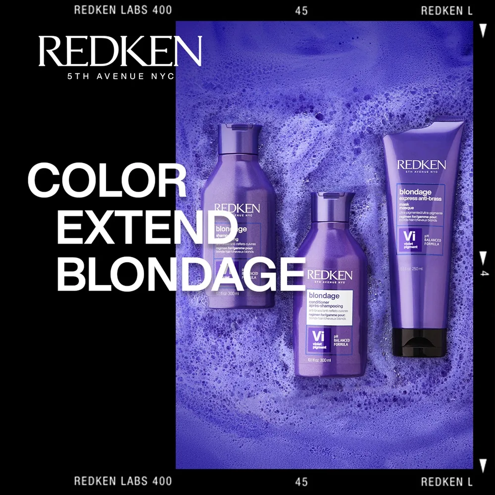Redken Color Extend Blondage ist die professionelle Pflegeserie zur Gelbstich Neutralisierung für blondes Haar.