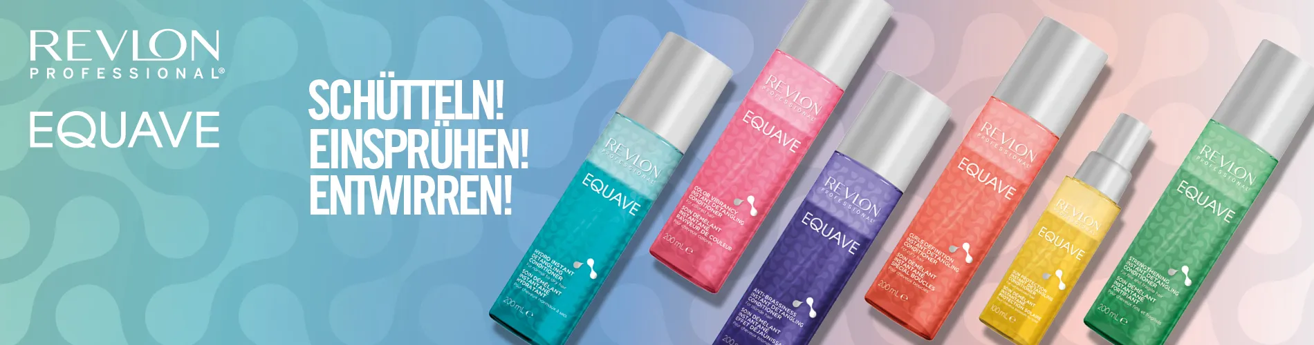 Die Linie besteht heute aus dem Revlon Equave Shampoo, einem Mizellen-Shampoo für alle Haartypen und Revlon Equave Conditionern, die mit ihren zwei Phasen in der Sprühflasche erscheinen. Es ist kein Ausspülen nötig! Sie sind auf die verschiedenen Haartypen abgestimmt: