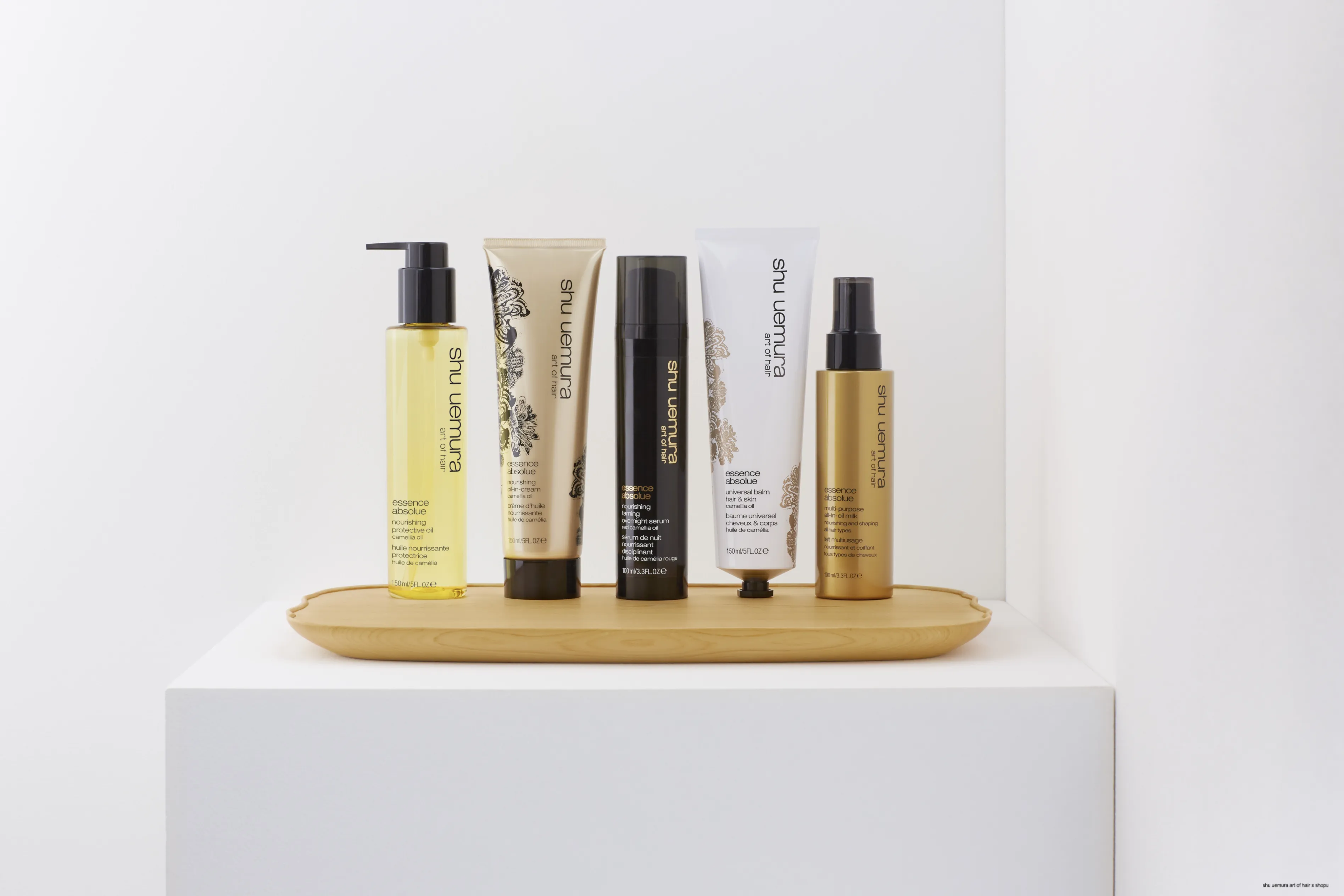 Shu Uemura Essence Absolue ist eine Pflegelinie mit fünf Produkten, die dieses Kamelienöl enthalten: