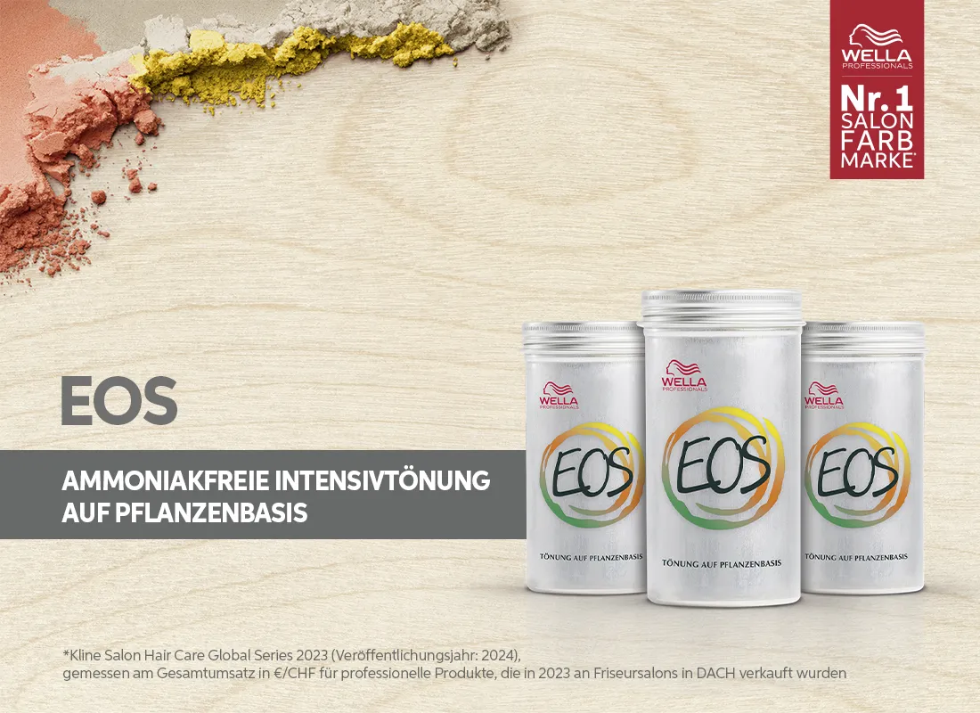 Wella EOS ist das natürlichere Rezept für glänzende Farbergebnisse. Die nicht-oxidative Tönung auf Pflanzenbasis basiert auf den natürlichen Tontiefen und Nuancierungen des Haares. Wella EOS umfasst 10 Nuancen: