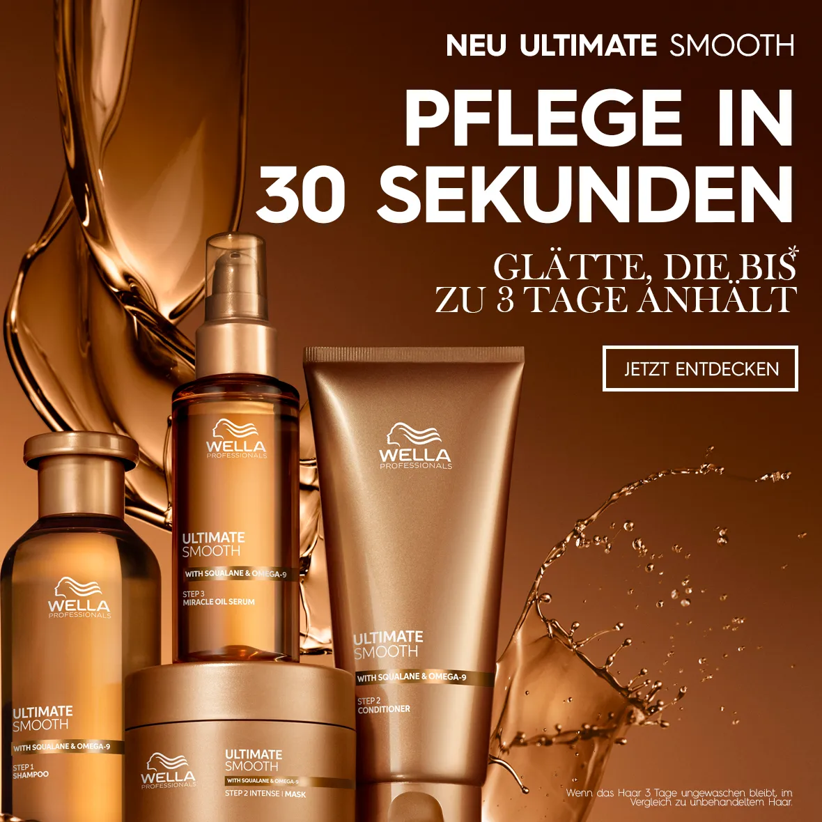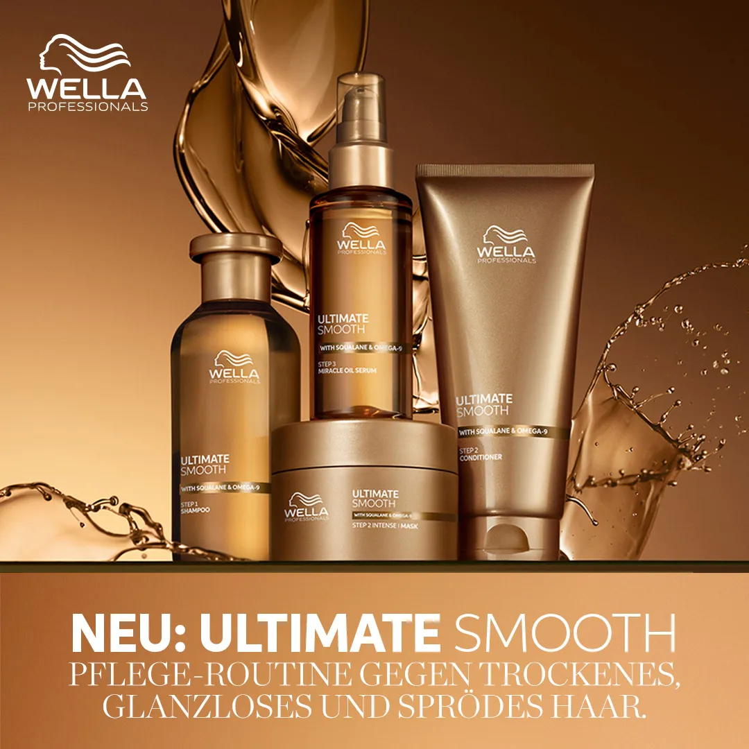 Entdecke die luxuriöseste Haarpflege von Wella Professionals: Ultimate Smooth - für seidiges, geschmeidiges Haar voller Glanz.